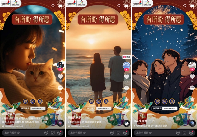 自11月初体彩“得所愿”主题票上市后,人们发现在小红书、抖音上出现了#有所盼得所愿#话题,不同领域的达人纷纷参与其中,分享生活中的小期待与实现瞬间。无论是健身打卡、年末心愿,还是日常小确幸,这些真实故事让“得所愿”变得更有温度。随后,快手也出现了#有所盼得所愿#活动,用短片和创意挑战赛,让 “得所愿”的美好寓意和正向价值不止于票面,而是成为点亮更多生活小确幸的指尖微光。
